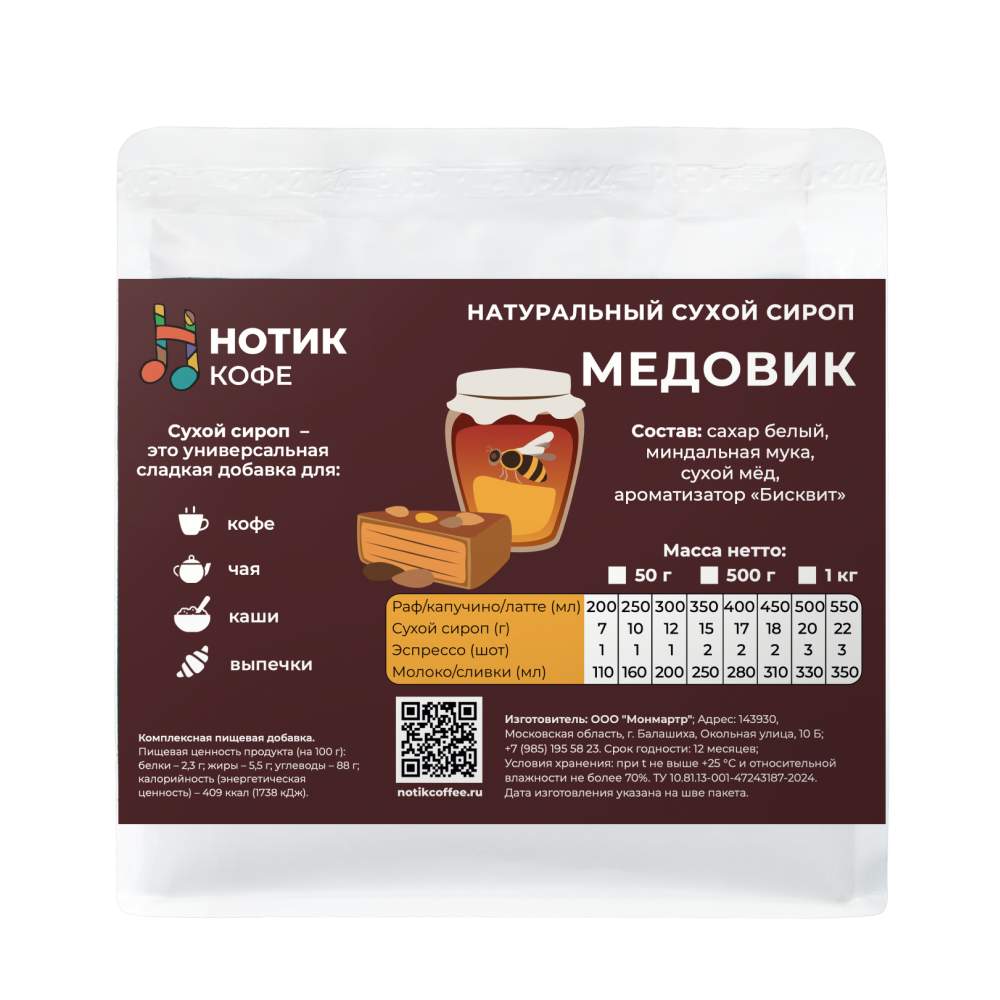 Сухой сироп МЕДОВИК для приготовления напитков и добавления в выпечку и десерты.