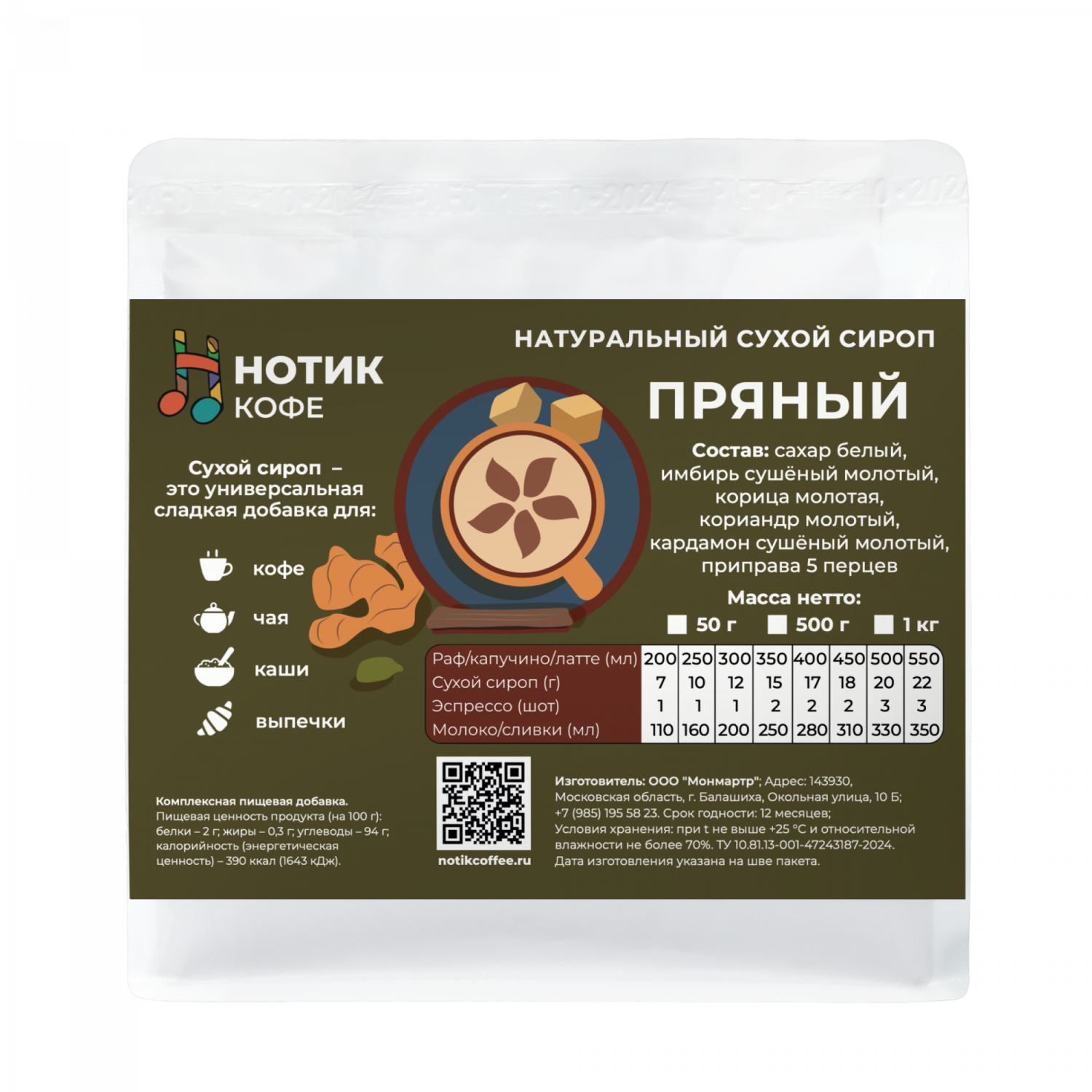 Сухой сироп ПРЯНЫЙ для приготовления напитков и добавления в выпечку и десерты.